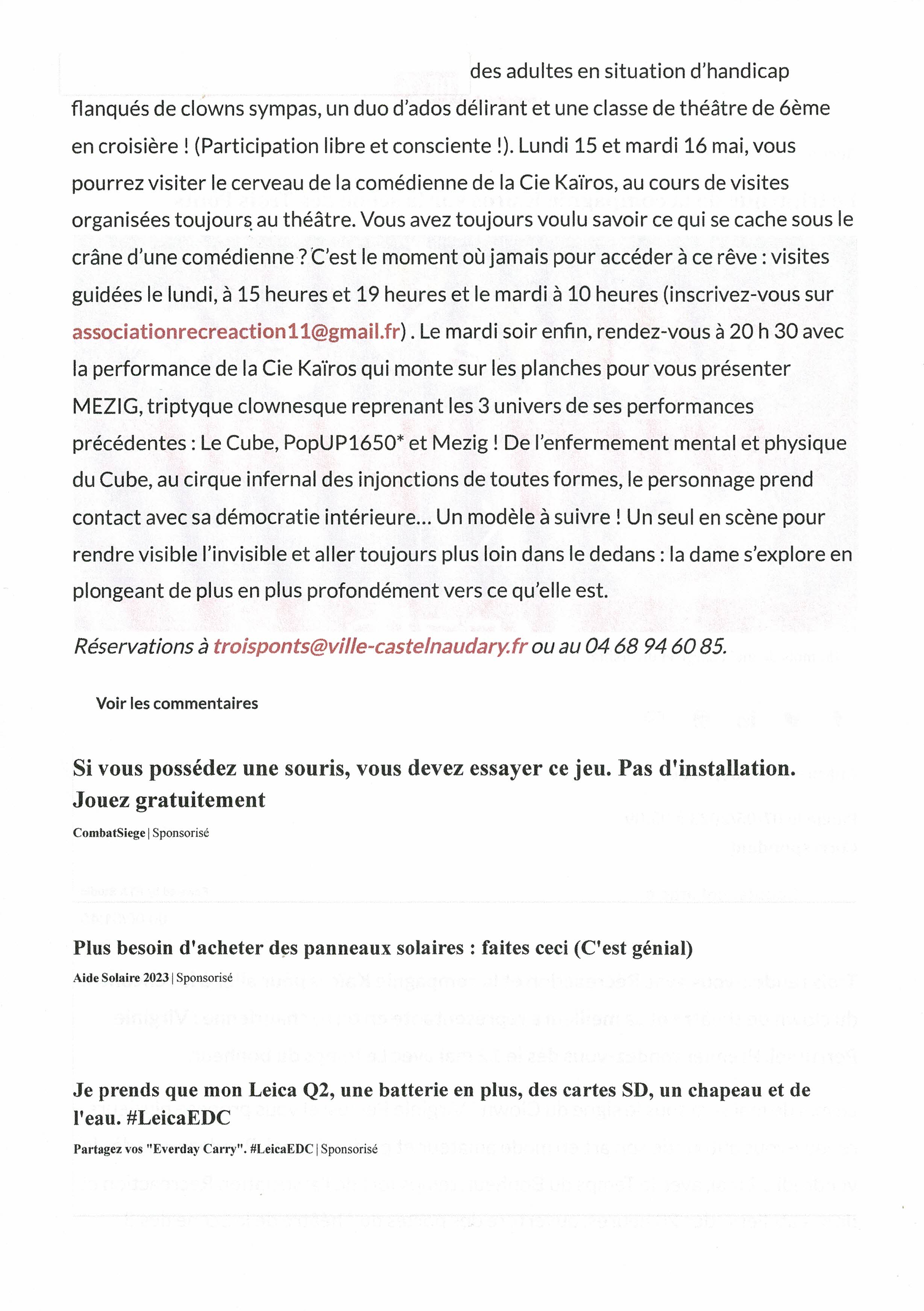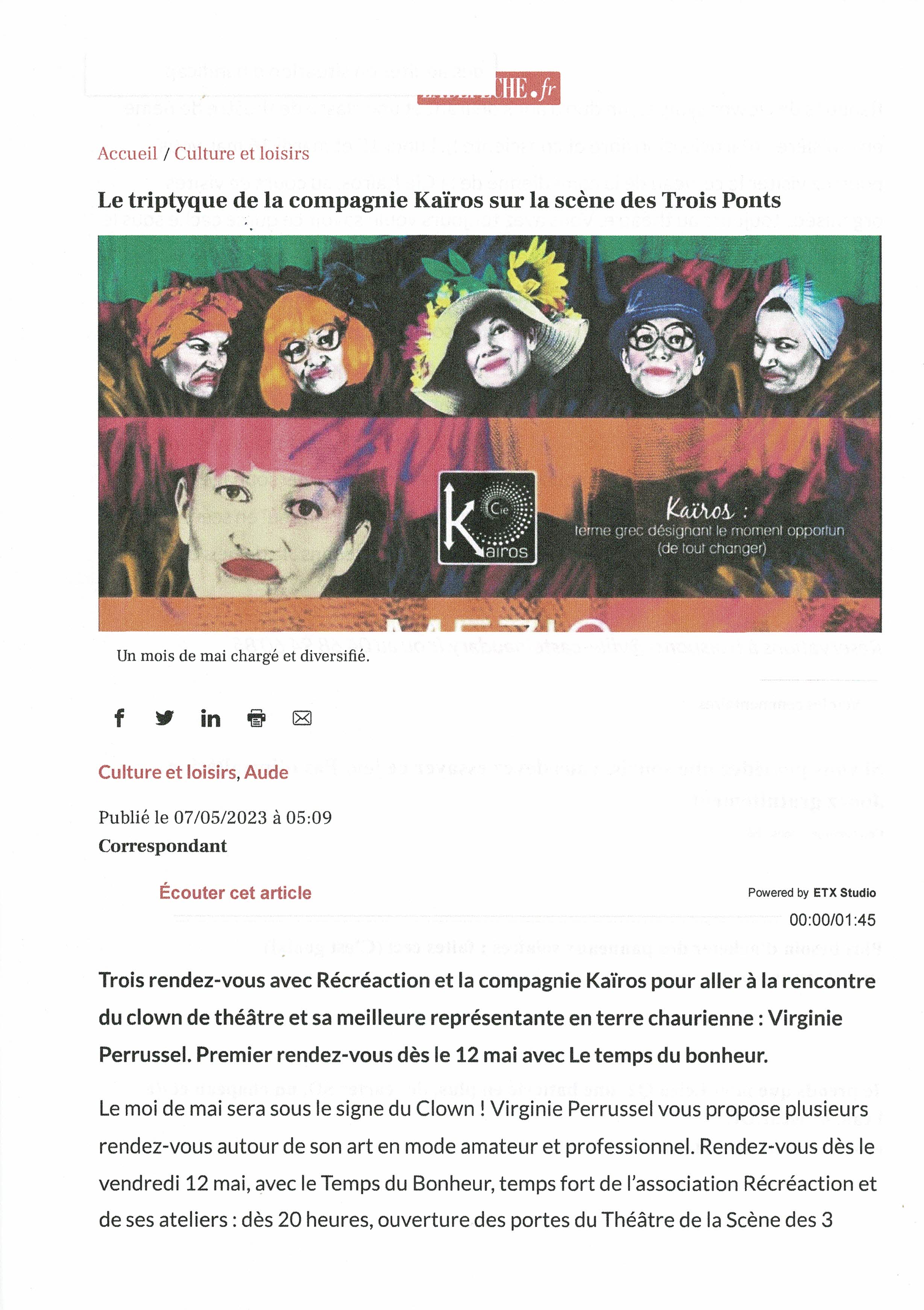 Mardi 16 mai à 20h 30, la Cie Kaïros a joué son triptyque MEZIG…