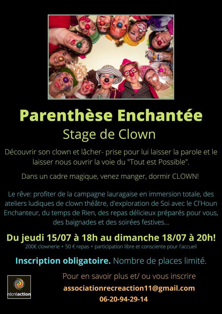 Parenthèse Enchantée : chaque mois de juillet, autour du 14 juillet, 3 jours de clown en pleine campagne lauragaise !